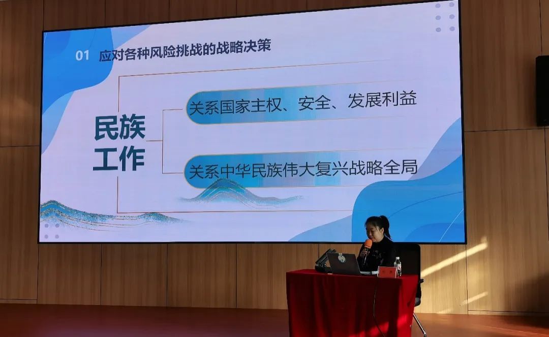 思想政治理论教研部成立了5个宣讲小组,先后深入满洲里市、根河市、鄂温克旗、陈巴尔虎旗、新巴尔虎左旗、新巴尔虎右旗等地,围绕“感党恩、听党话、跟党走”“铸牢中华民族共同体意识”“推动高质量发展”“建设社会主义生态文明”等主题开展宣讲。